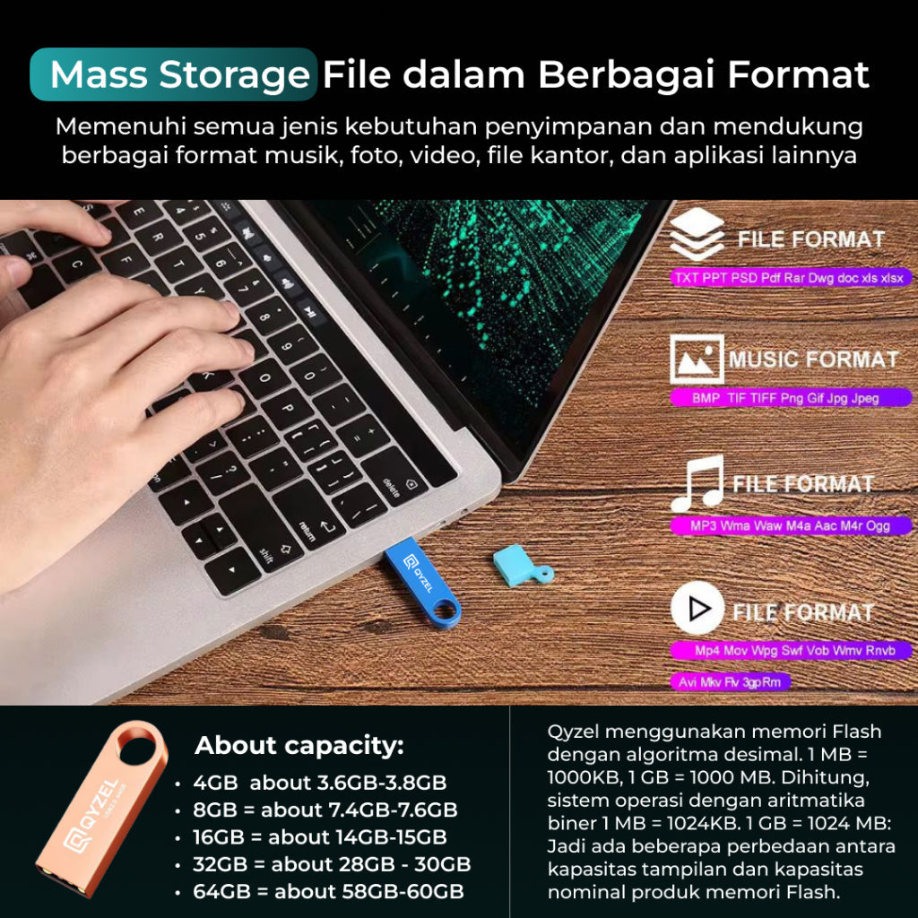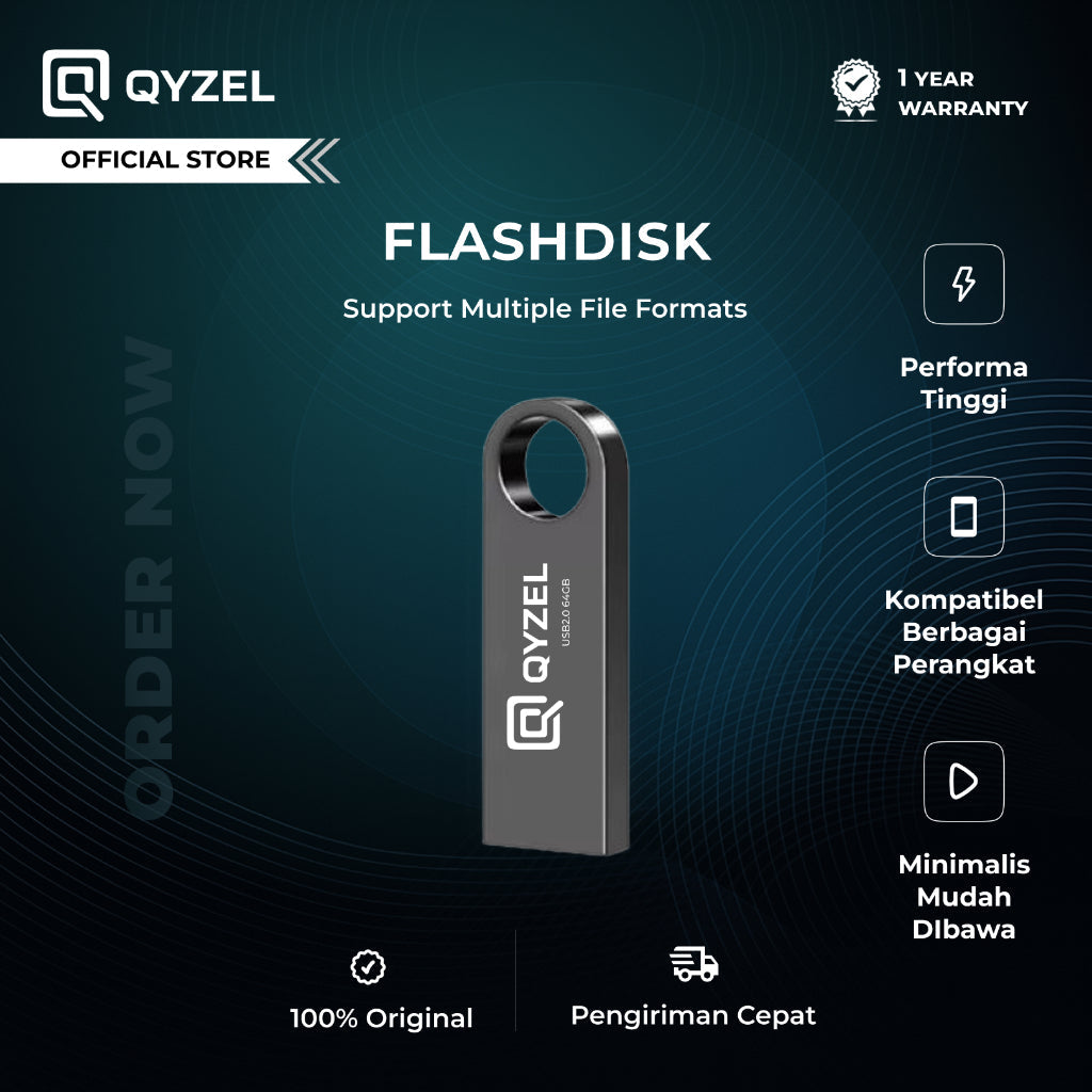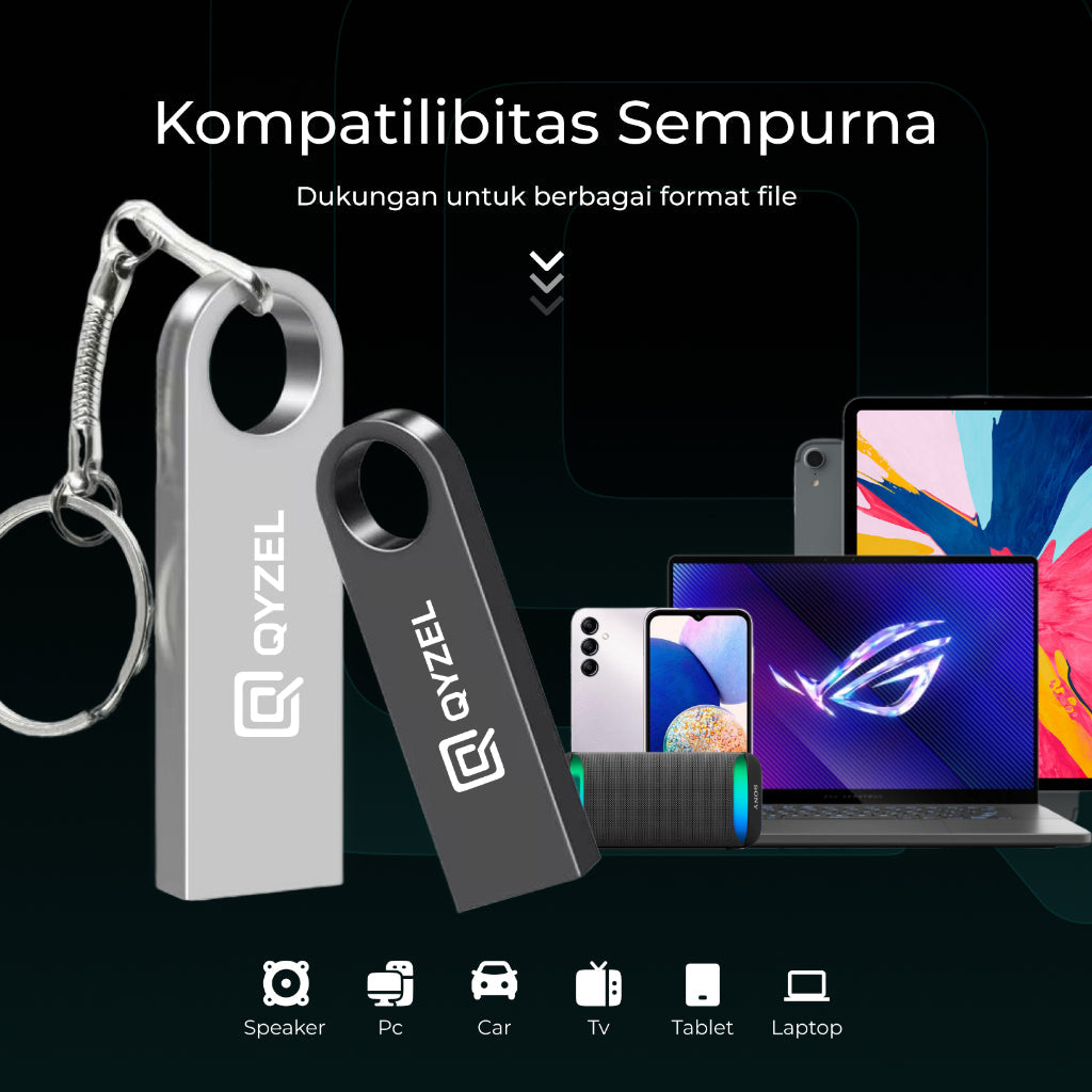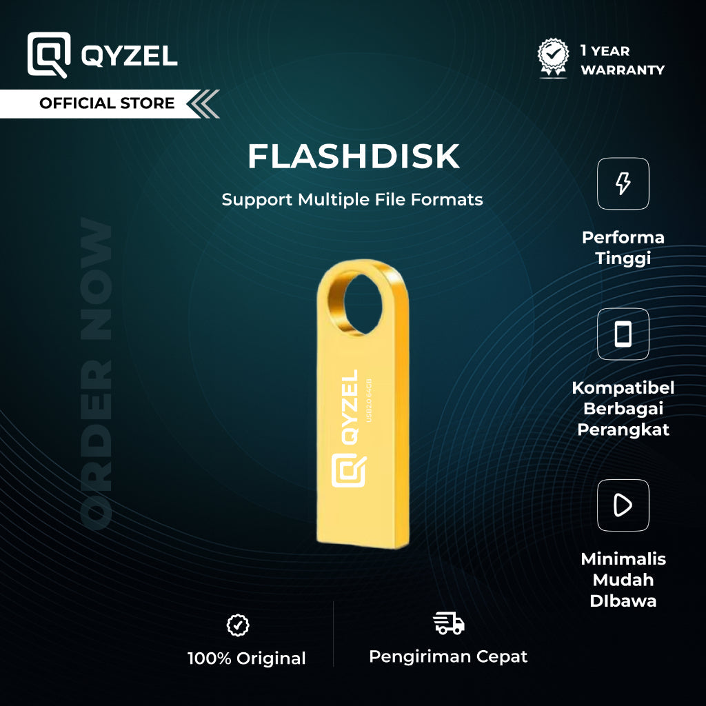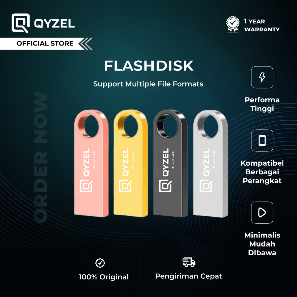 QYZEL Flashdisk F1 USB 2.0 Flash Drive 4GB/8GB/16GB/32GB/64GB Jump Drive Compatible Multi DeviceFlashdisk QYZEL dapat digunakan secara luas di komputer, perangkat dalam kendaraan, konsol game, Smart TV, hingga perangkat lain yang memiliki port USB dan kompatibel. Sangat praktis untuk kebutuhan backup data, penyimpanan file, hingga transfer data harian.
